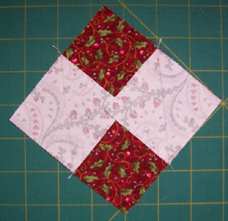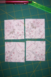 We'll make the center square-in-a-square first. If you have another construction method for this that you like, by all means use it. Just be sure the final piece comes out 4.5" square (4" finished size).